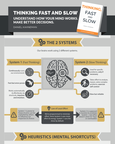 Thinking Fast and Slow contains research, examples, and exercises to help us identify our System 1 biases and errors in our everyday lives. It urges us to intentionally slow down and use System 2 more effectively, particularly in high-pressure situations. The author provides detailed explanations of solutions to minimize bias where feasible. Furthermore, he simplifies many concepts and phenomena, giving easy-to-recall names for observed phenomena in his studies.