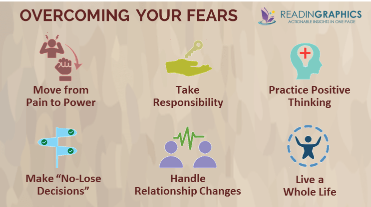 How can you move from “I can’t handle it” to “I will handle it”, so you can move ahead in spite of your fears? The idea is to re-educate yourself about fear, then use one or more of the tools provided to move ahead whenever you feel afraid. We’ve organized these tips into 6 broad areas in our full 14-page book summary. Here’s a very brief overview: