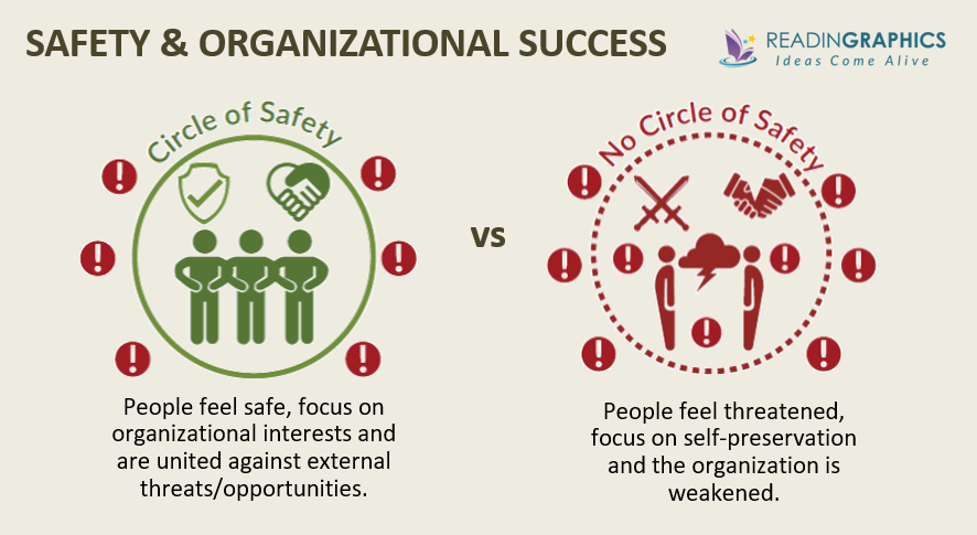 Traditionally, our family provides a Circle of Safety where we feel safe and supported. Inside the circle, we have a healthy balance of E.D.S.O. and low Cortisol levels. In organizations, Circles of Safety provide people with a sense of belonging and security. People feel valued and cared for, and trust that others will act in their interests. This facilitates communication, cooperation, problem-solving and innovation, allowing people to direct their attention to external threats and opportunities. By contrast, when people feel threatened by internal politics and infighting, they turn their attention inward to focus on self-preservation, making the group more vulnerable as a whole.
