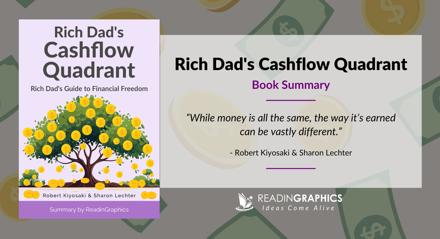 Shifting from the left side to the right side of the Cashflow Quadrant involves changing how you think about money, risk, and security, then building systems and assets that align with that new thinking. If you’d like to zoom in on the ideas above and get more detailed insights, examples and actionable tips, do check out our full book summary bundle that includes an infographic, 14-page text summary, and a 22-minute audio summary.