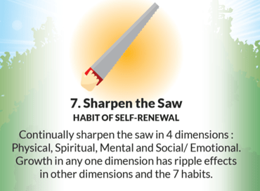 Finally, the habit 7 creates an upward growth spiral as you continually renew and grow yourself and hone the 6 previous habits.