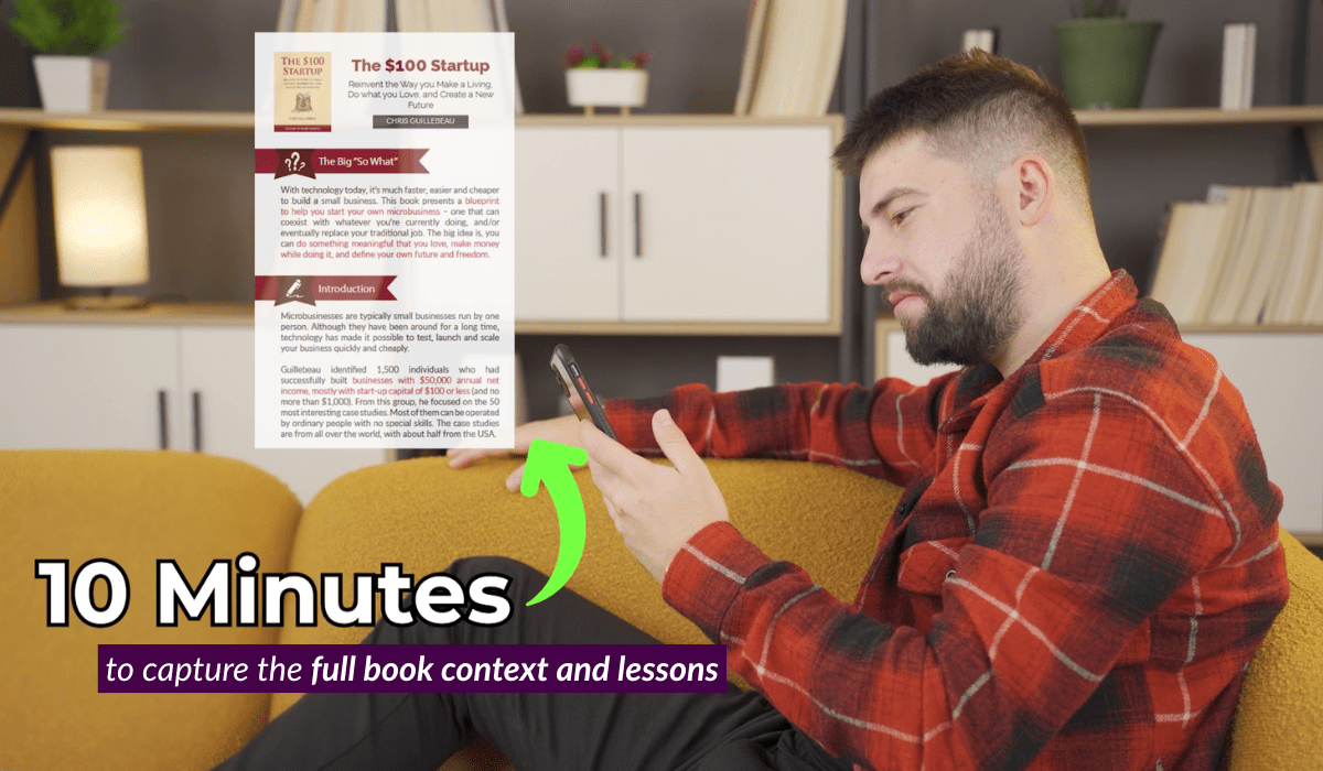 Most people do not have much free time. It often takes about 10 to 12 hours to finish a nonfiction book. With all our commitments, reading can stretch over days or even weeks. By the time we finish, it’s easy to forget the book’s contents. Sometimes, we simply quit reading because we’re so short on time.