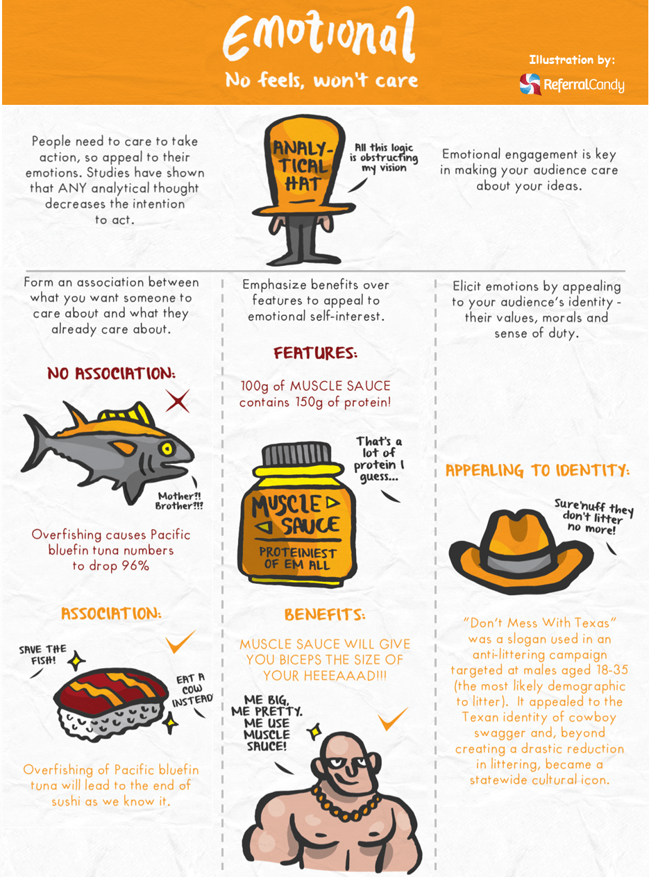Well, we were really excited to find this summary illustration by Referral Candy, which condenses some of the powerful examples in the book and real life, all in graphics. *Love it!* Here’s a reblog, with some adaptation to their original graphics/ illustrations.