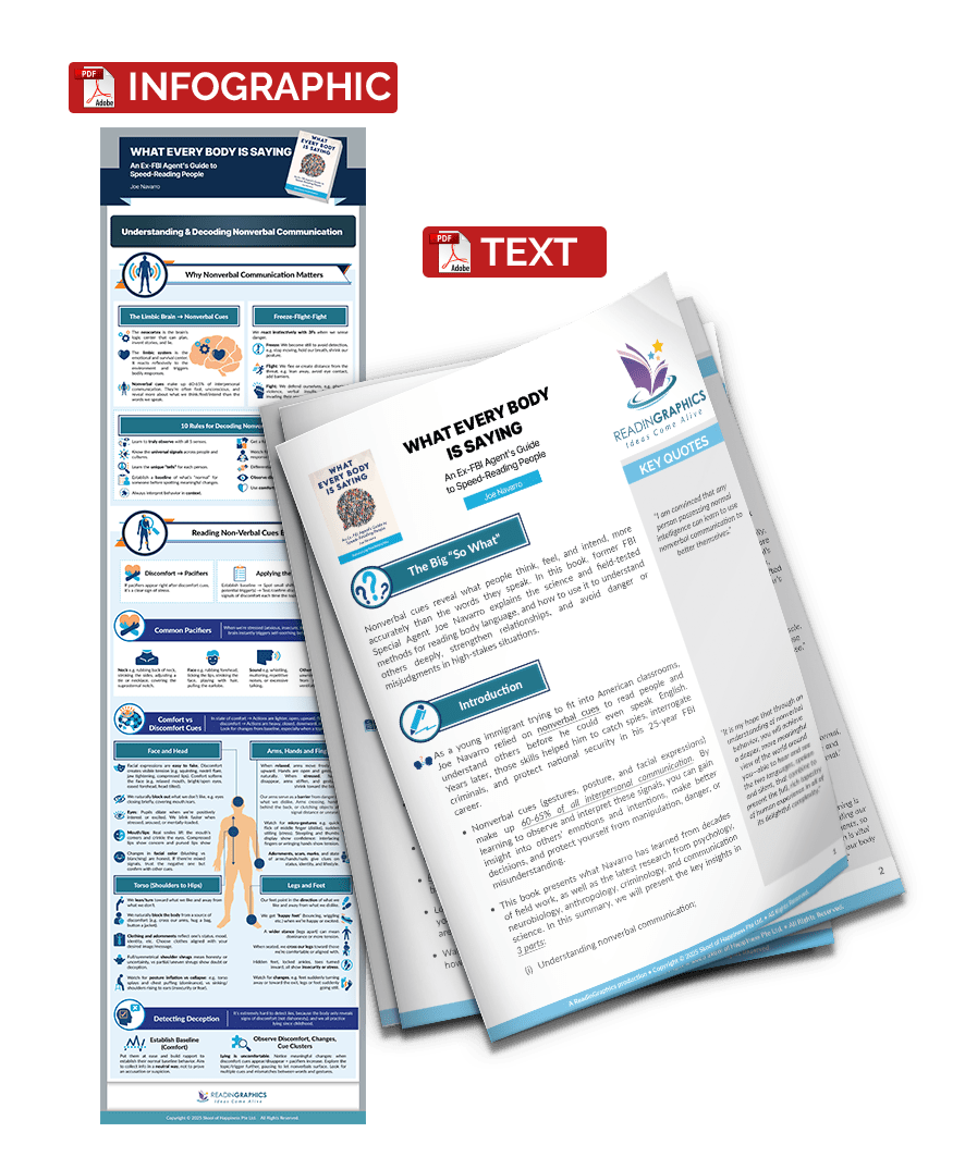 Nonverbal cues reveal what people think, feel, and intend, more accurately than the words they speak. This book explains the former FBI agent Joe Navarro’s field-tested methods for reading body language and how to use it to understand others deeply, strengthen relationships, avoid danger and misjudgments in high-stakes situations.
